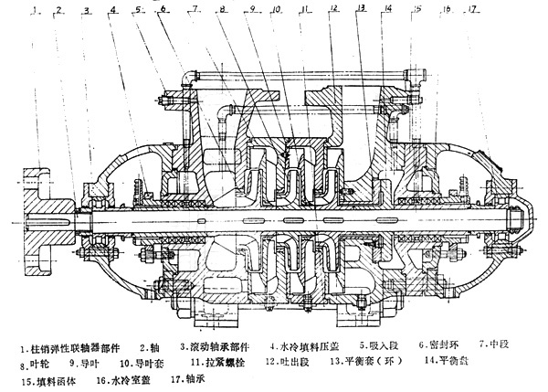 四、DG型鍋爐給水泵結(jié)構(gòu)圖:
