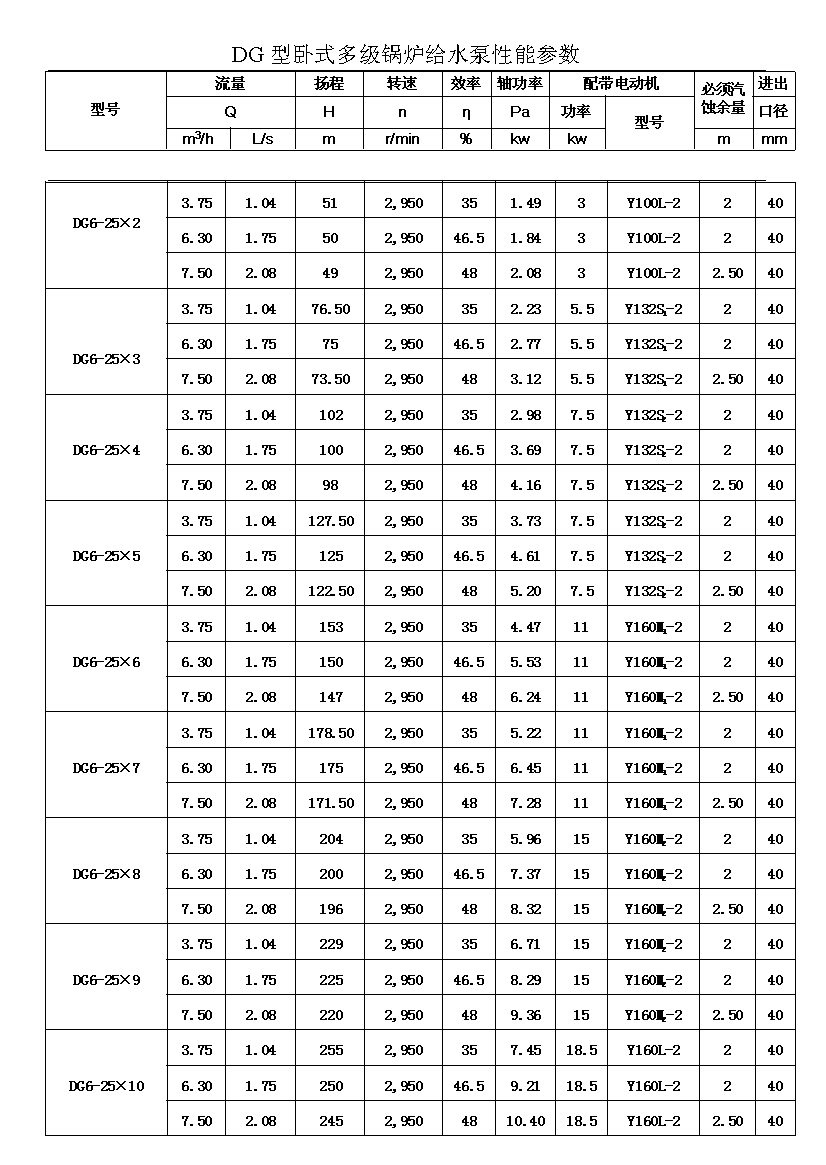 DG6-25型泵單級性能曲線圖(n=2950r/min)